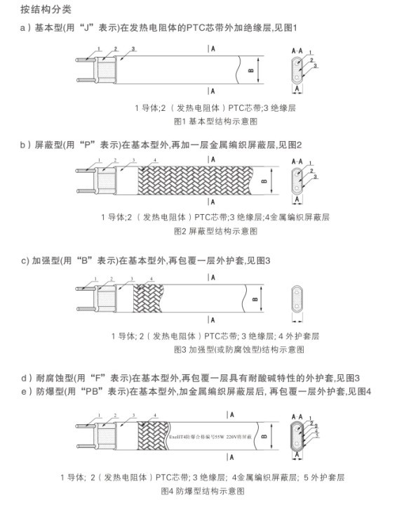 自控溫電伴熱帶結(jié)構(gòu)型號分類